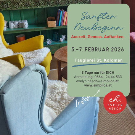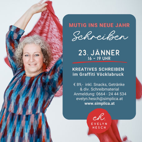 Mut beginnt immer im TUN. Als langjährige Beraterin und Coach bezeuge ich das voll und ganz. Das Leben ist Veränderung und diese, wie wir wissen, die einzige Konstante. Die Neujahrsvorsätze purzeln meist zu dieser Zeit gerade wieder munter über Bord, die alten Gewohnheiten machen es sich wieder gemütlich. Wo soll es für dich hingehen in diesem Jahr? Erfahre schreibend, was du wirklich darüber denkst und erkunde mit mir, wo es dich hinführt. Ich habe die notwendigen, kraftvollen Schreib- und Gedankenimpulse dazu für dich im Gepäck. Dein Stift wird dir verraten, was schon in dir schlummert und heuer möglicherweise zum Leben erweckt werden will. Mach dich mit Klarheit und Leichtigkeit auf in ein glanzvolles Jahr 2026!